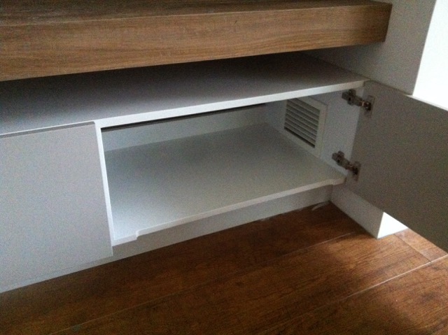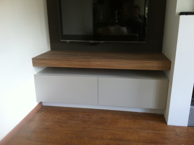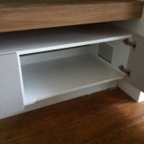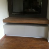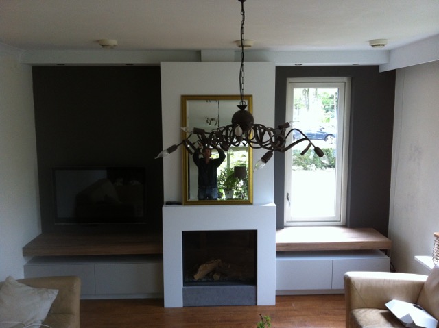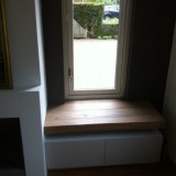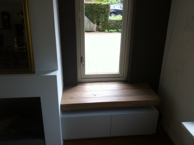Op maat gemaakte moderne schouw, vensterbanken en kastjes, volledig geïntegreerd in de stijl van het interieur.